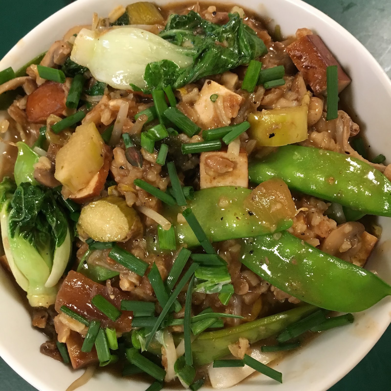 The hospital across the street from where I work serves a Bistro Bowl where you get to pick the ingredients. I veg mine up and use both the tofu and peanuts as protein, topped with chimichurri sauce. It's pretty yummy.